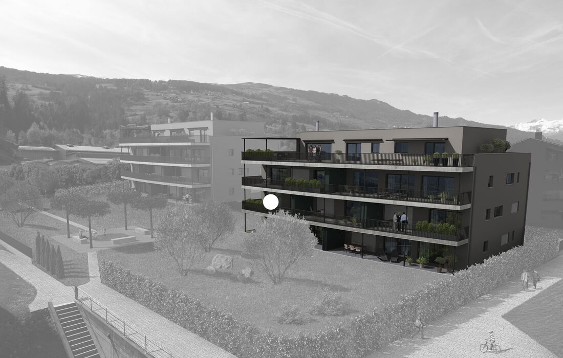 Im Aussenbereich ist eine idyllische Gartenanlage geplant. Auch verfügt die Liegenschaft über eine grosszügige Tiefgarage, genügend Aussen- sowie Besucherparkplätze. Die Wohnung wurde nach den Richtlinien des hindernisfreien Bauens geplant und kann so bis ins hohe Alter ideal genutzt werden.